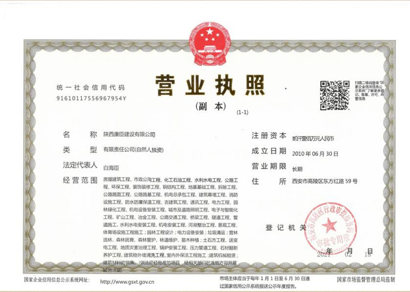 陜西康臣建設(shè)有限公司(簡稱康臣建設(shè))始建于2010年6月,注冊資金2100萬元整。公司是從事市政公用工程、房屋建筑工程、城市及道路照明工程、電力工程、石油化工工程為主的企業(yè),具有建筑工程施工總承包二級、市政公用工程施工總承包二級、鋼結(jié)構(gòu)工程施工專業(yè)承包二級、城市及道路照明工程專業(yè)承包、電力工程施工總承包、石油化工工程施工總承包、環(huán)保工程專業(yè)承包、機(jī)電工程施工總承包、地基基礎(chǔ)工程專業(yè)...more+